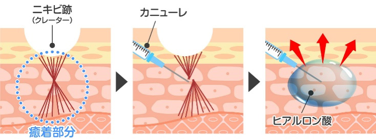特殊な針(カニューレ)をニキビ跡の横から差し込みます。