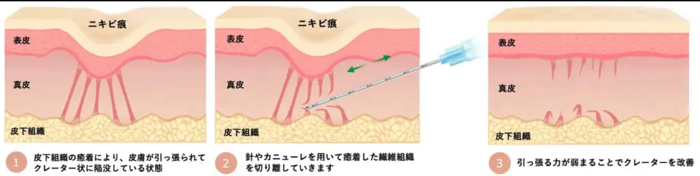 サブシジョンは、深く凹んだローリング型(お椀型)のニキビ跡(クレーター)を改善する治療法です。