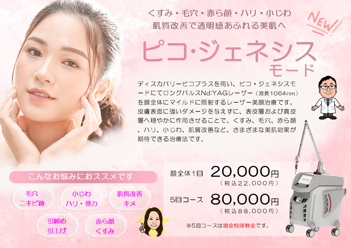 姫路さくらクリニック。に、お肌の透明感とハリ感を高める最新美肌治療「ピコ・ジェネシスモードの施術」が新しく仲間入りしました✨